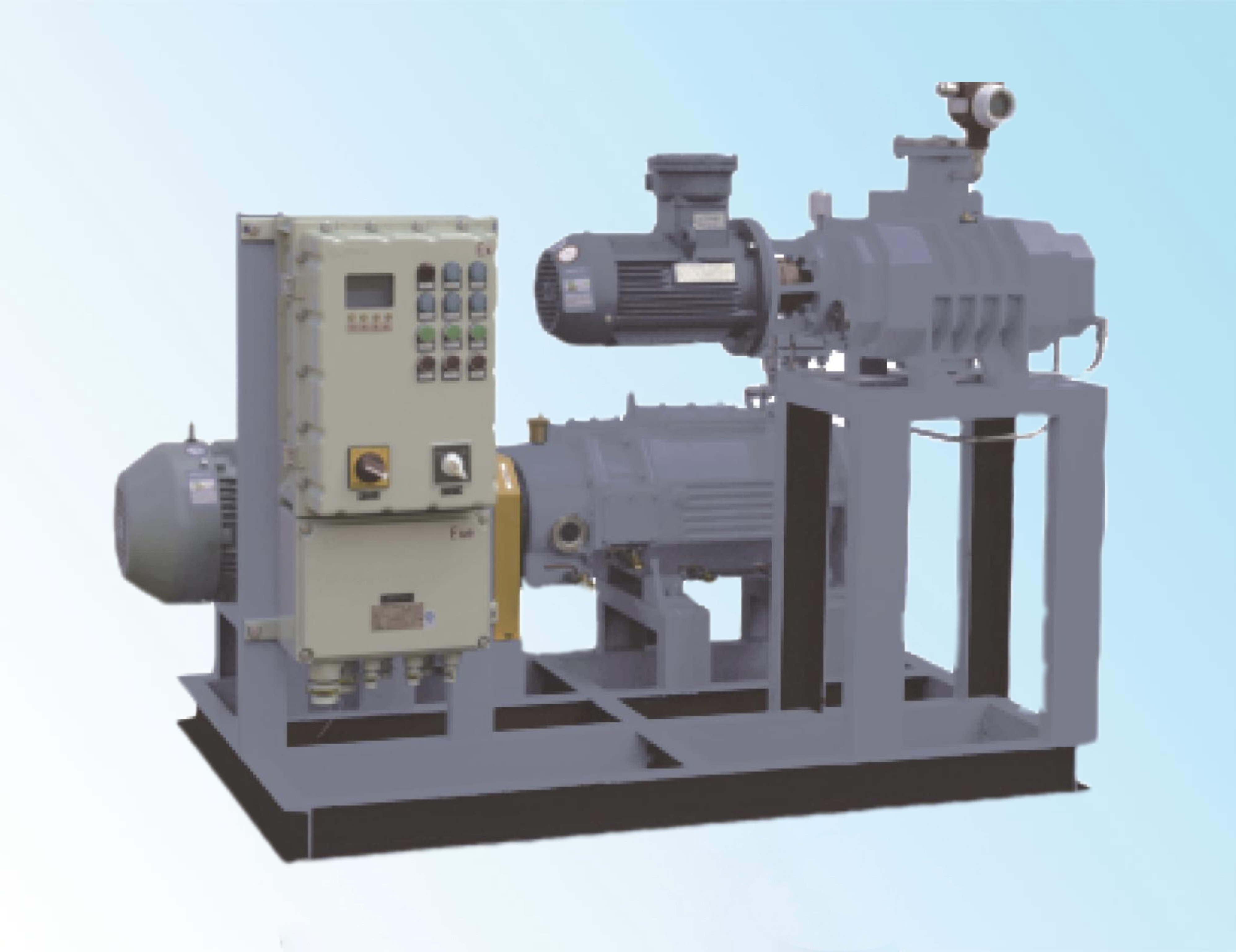 罗茨泵由两个相互旋转的叶轮组成,这两个叶轮通过齿轮相互啮合但不接触,这样可以减少能量损失和摩擦热量,叶轮的旋转使得气体被吸入泵内,随后被压缩并排出,这种结构使得罗茨泵能够在高真空环境下工作,不会产生污染物,且能处理大量气体。螺杆泵通过两个相互啮合的螺杆工作,这些螺杆将气体逐渐挤压并排出,在螺杆旋转过程中,气体从进气口进入,沿着螺旋沟槽被压缩,最终从排气口排出.